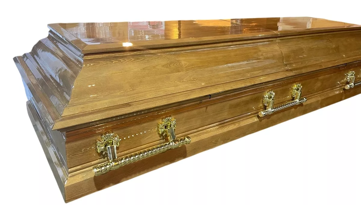 Гроб двухкрышечный "Даллас" 4 гранный представляет собой элегантное и достойное решение для проведения церемонии прощания. Его классический четырёхгранный дизайн подчёркивает строгость и уважение, что делает его идеальным выбором для ритуальных мероприятий. Гладкая поверхность и глубокий тёмный цвет придают изделию благородный вид, а качественная декоративная отделка добавляет изысканности.