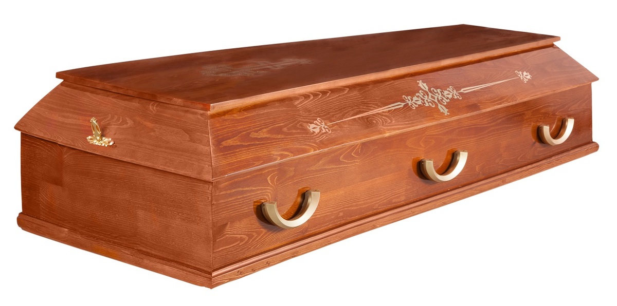 Гроб "Питер" 4 гранный с узором колода представляет собой изысканный ритуальный гроб, выполненный в классическом стиле, который сочетает в себе элегантность и строгость. Его светлый оттенок и лаконичный узор колода придают изделию особую утонченность, подчеркивая важность момента прощания. Четырёхгранная форма гроба обеспечивает традиционный вид, что делает его подходящим выбором для церемонии похорон и прощания.