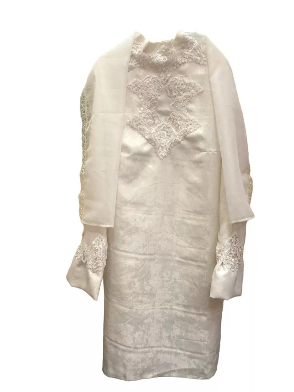 Символическое одеяние женское для усопшего с шарфом "Элит-1" — это изысканный элемент ритуальной одежды, созданный с уважением к традициям и вниманием к деталям. Изделие выполнено в благородном белом цвете, что символизирует чистоту и покой. Одеяние украшено декоративной отделкой, придающей ему особую торжественность и элегантность. Шарф, входящий в комплект, гармонично дополняет образ, создавая ощущение завершенности и гармонии.
