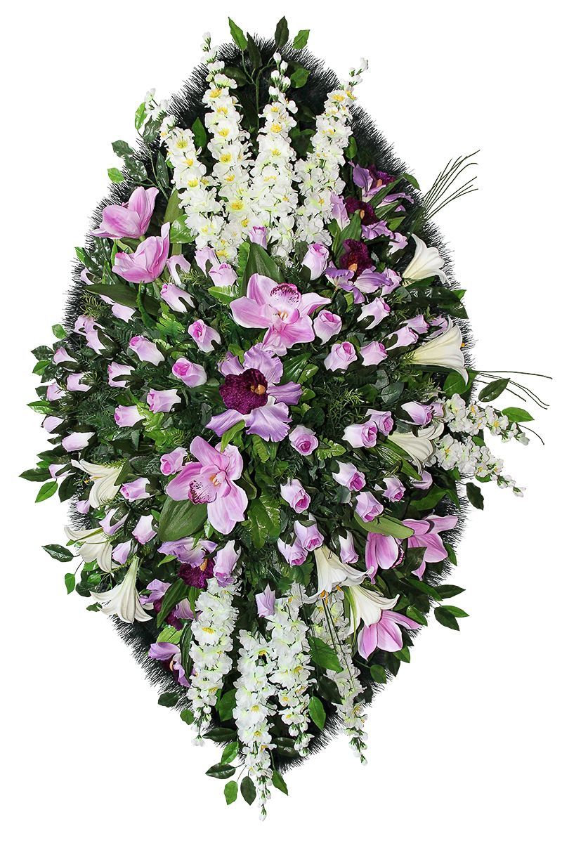 Плотная окантовка венка подчёркивает его форму, а декоративная отделка придаёт изделию завершённый вид. Искусственные цветы, используемые в оформлении, сохраняют свою красоту на протяжении длительного времени, что особенно важно для памятных дат и мемориалов. Венок "Элит" №23 прекрасно подходит как для похоронной церемонии, так и для возложения в дни памяти.