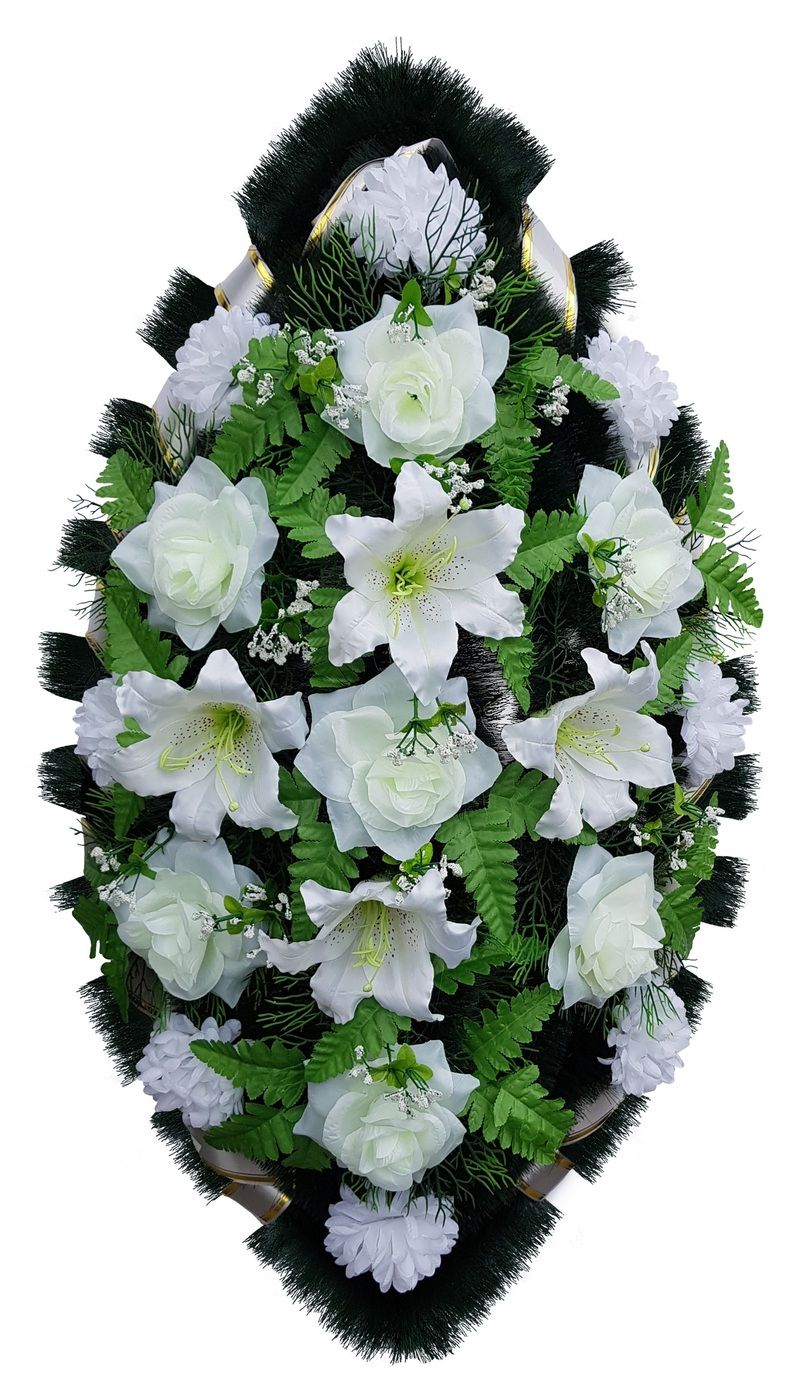 Венок "Стандарт" №10 — это изысканный ритуальный венок, который станет достойным символом уважения и памяти. Искусственные цветы, использованные в его оформлении, создают впечатление живой композиции, придавая ей естественность и красоту. Белоснежные цветы гармонично сочетаются с зелёными элементами, создавая контраст и подчёркивая торжественность момента. Плотная окантовка венка обеспечивает его аккуратный вид и долговечность, что особенно важно для возложения на кладбище или во время церемонии прощания.